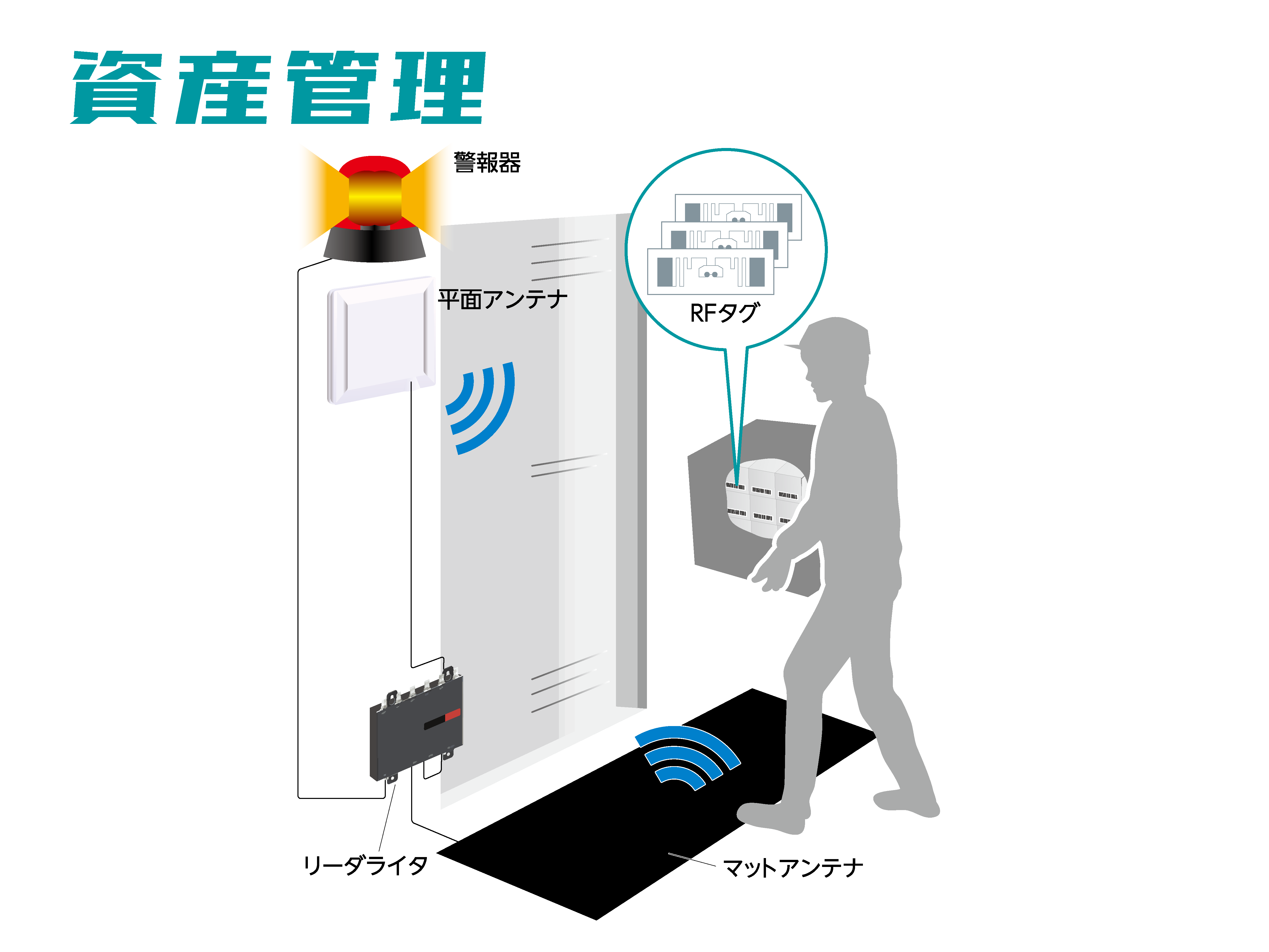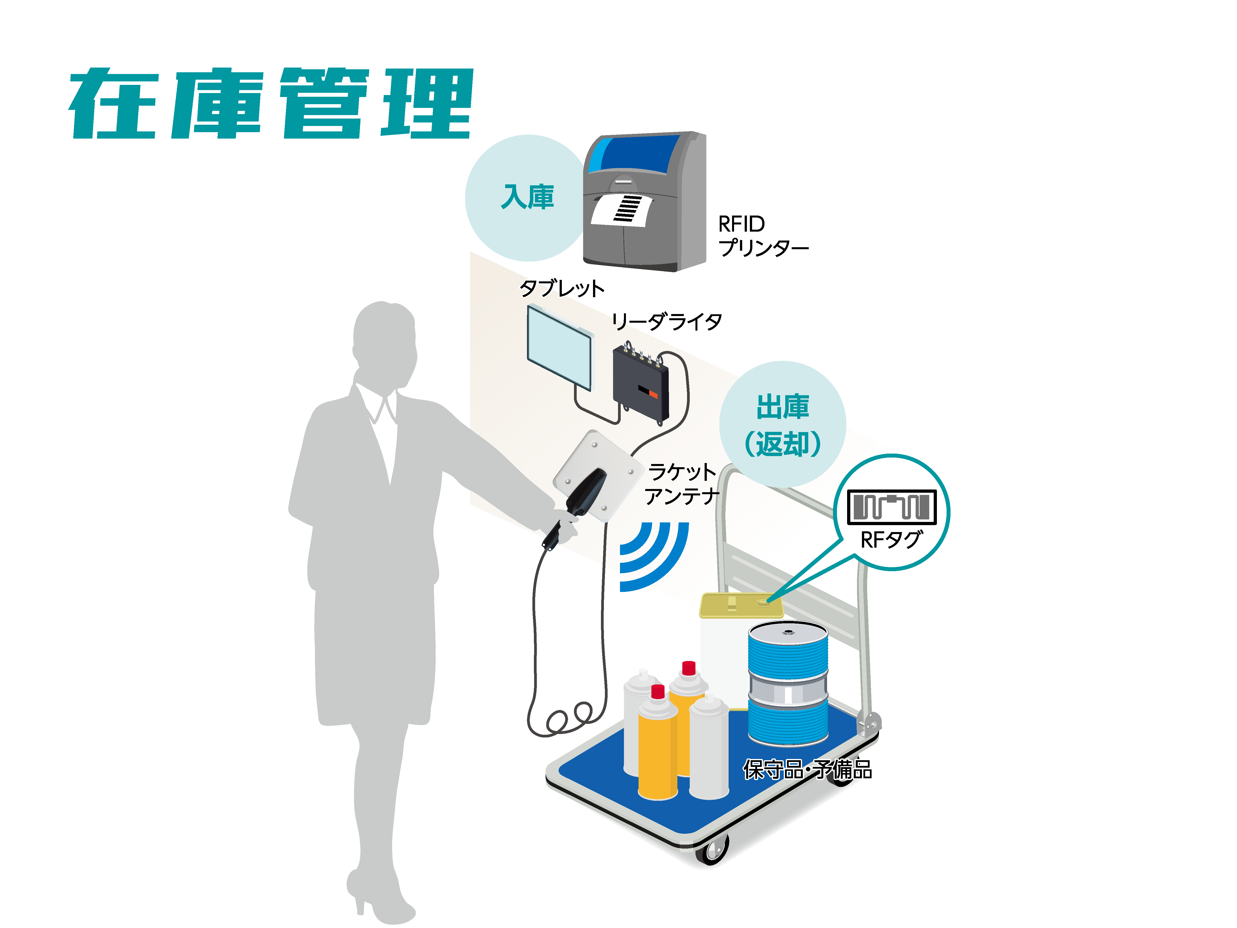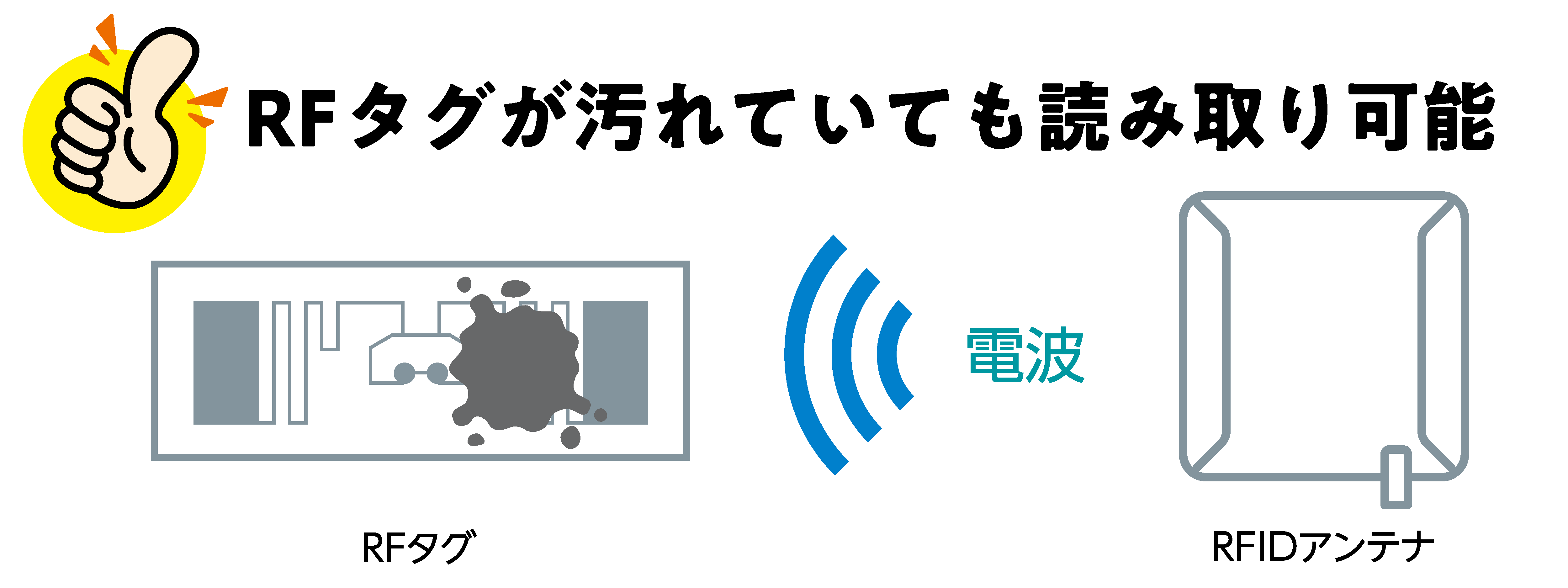 RFIDとはRadio Frequency Identificationの略で、電磁誘導または電波を利用し、無線通信によってRFタグの情報の読み出し、書き換えを行う自動認識システムのことです。